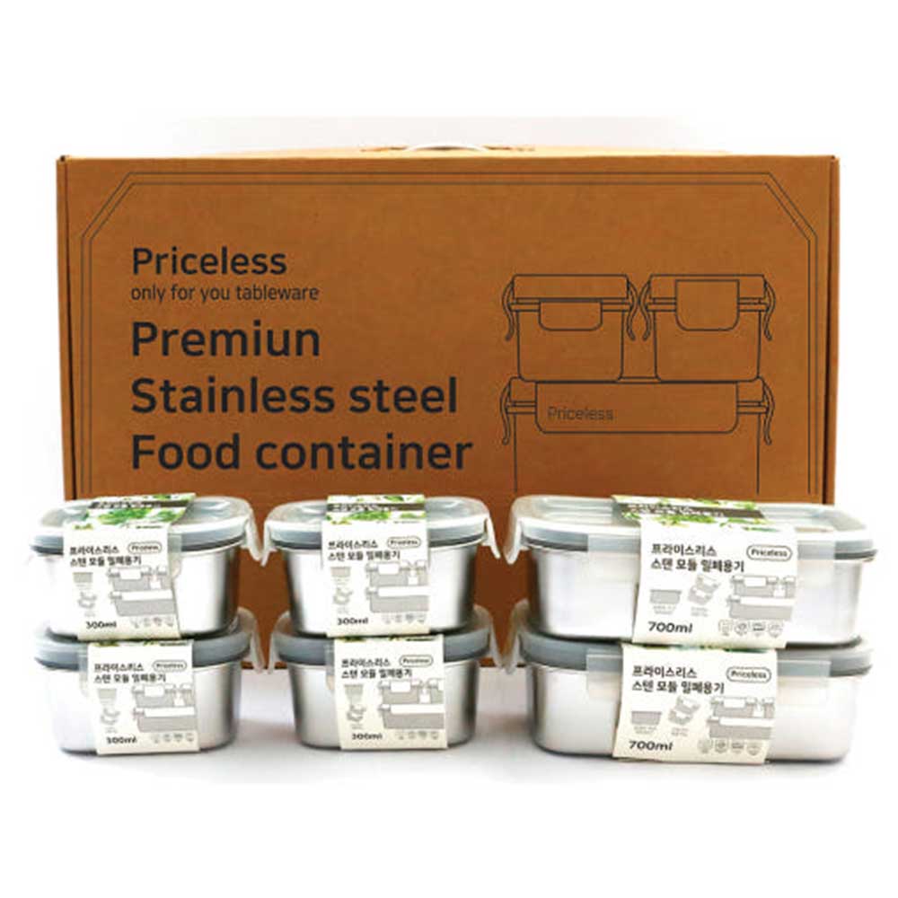 프라이스리스 모듈형 스텐 밀폐용기 6P 혼합세트 소 (300ml 4개+700ml 2개)